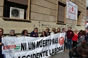 UGT y CCOO se concentran por la tercera víctima mortal en Accidente laboral de este año.