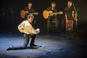 Tras el despliegue coral, llegó uno de los momentos solistas de la velada, con Borja Cortes interpretando una elegante farruca, con muchos matices de danza contemporánea y reforzando más que nunca esa conexión rítmica de la guitarra que la emparenta tanto con el tango argentino. Por tientos-tangos continuó el repertorio, de nuevo con todo el cuerpo de baile sobre el escenario. El sinuoso y sugerente tempo del cante permitió mostrar el lado más sensual del baile flamenco, con referencias a Chano Lobato o Enrique Morente en las letras, interpretadas por Sebastián Cruz, Vicente Gelo y José Luis Pérez-Vera, con las guitarras de Juan Torres y Pau Vallet y la percusión de Raúl Domínguez.